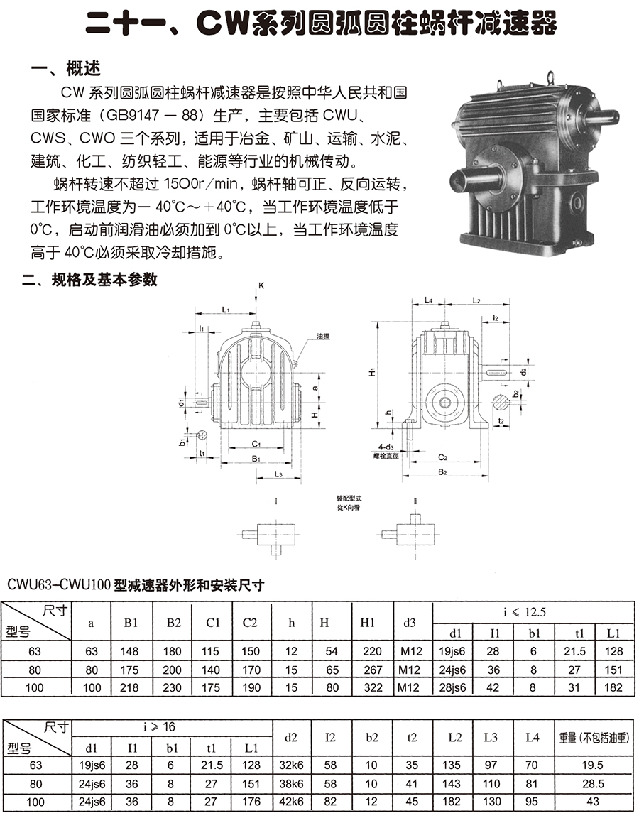 所屬類別:CW系列圓弧圓柱蝸桿減速機